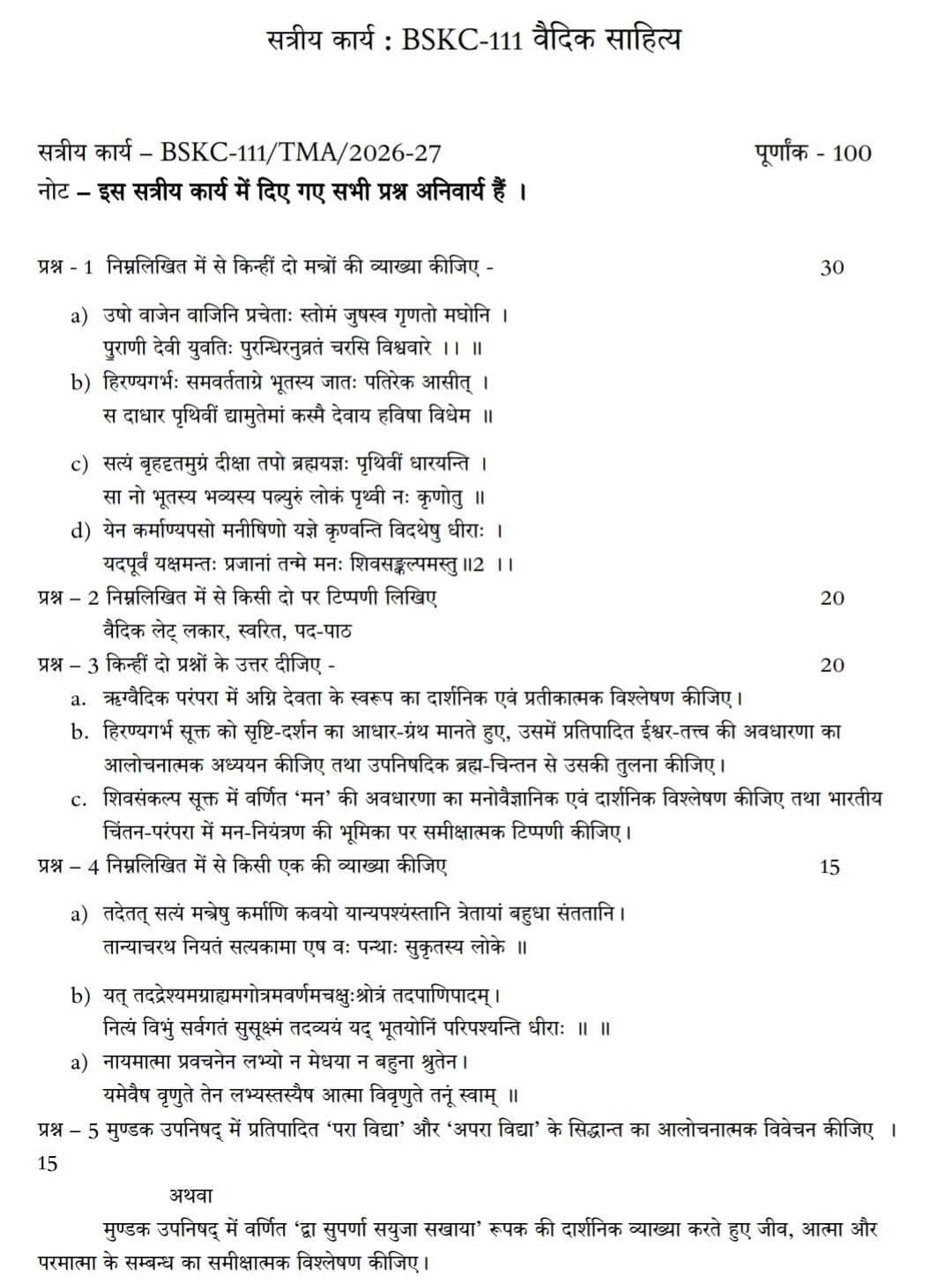 BSKC 111 IGNOU Solved Assignments 2026 (Sanskrit) PDF Download – IGNOU Galaxy