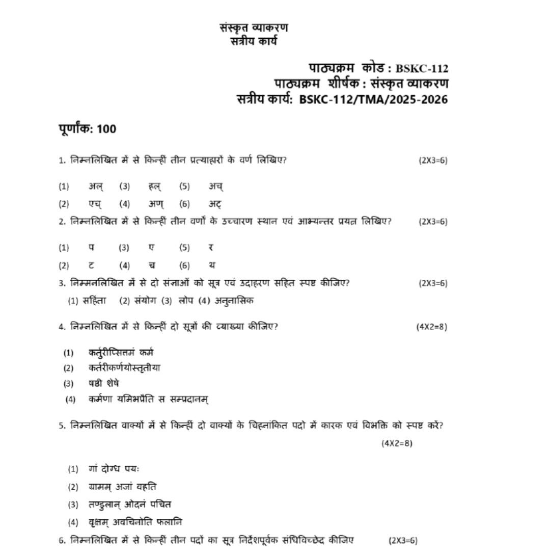BSKC 112 IGNOU Solved Assignments 2025-26 (Sanskrit) PDF Download – IGNOU Galaxy