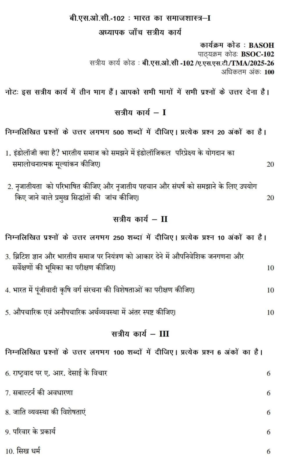 BSOC 102 IGNOU Solved Assignments 2025-26 (Hindi) PDF Download – IGNOU Galaxy