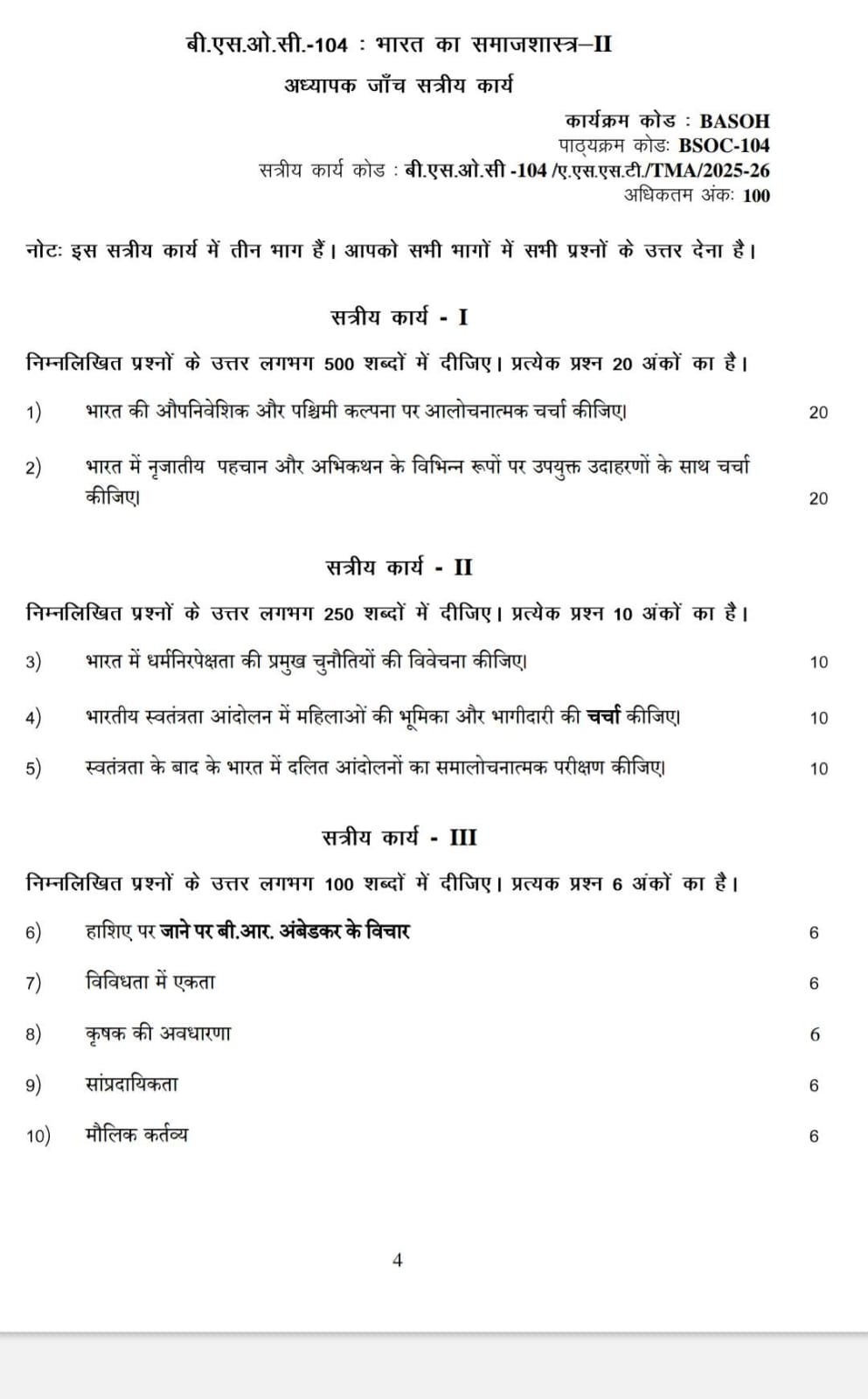 BSOC 104 IGNOU Solved Assignments 2025-26 (Hindi) PDF Download – IGNOU Galaxy