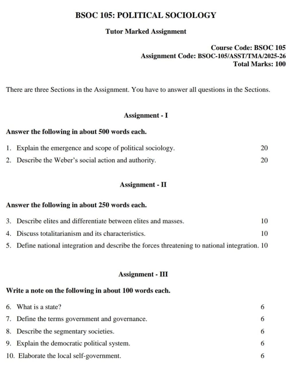 BSOC 105 IGNOU Solved Assignments 2025-26 (English) PDF Download – IGNOU Galaxy
