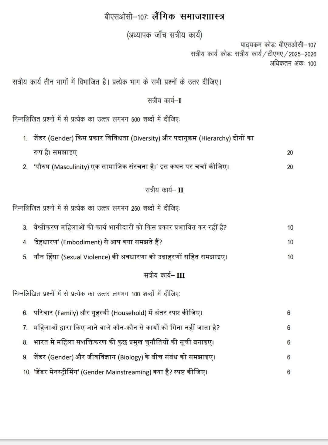 BSOC 107 IGNOU Solved Assignments 2025-26 (Hindi) PDF Download – IGNOU Galaxy