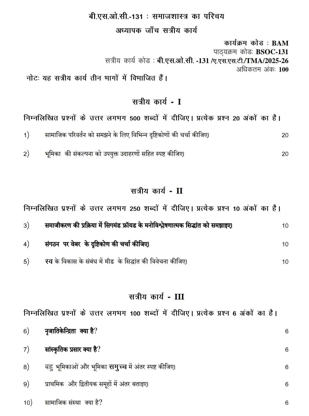 BSOC 131 IGNOU Solved Assignments 2025-26 (Hindi) PDF Download – IGNOU Galaxy