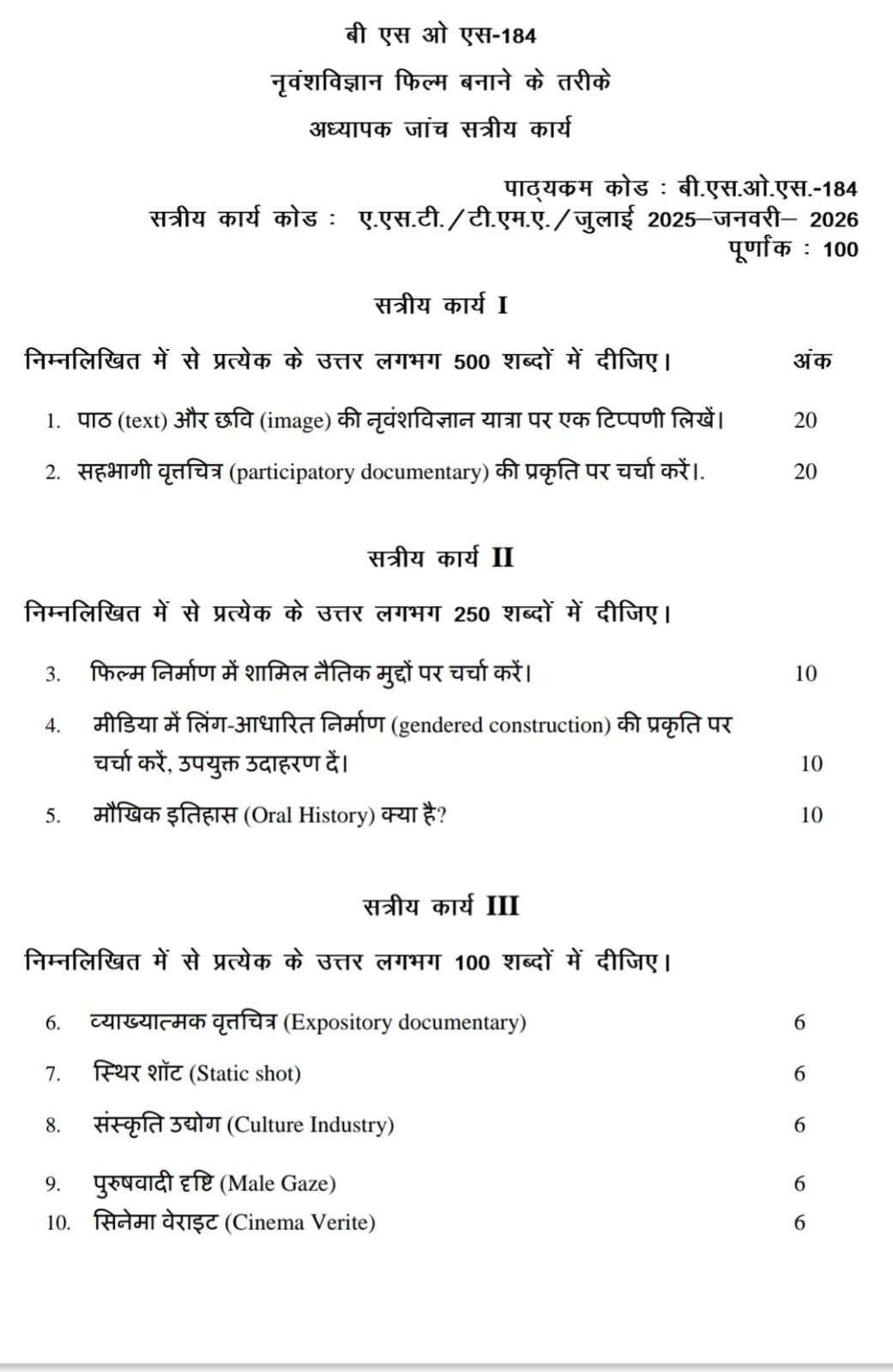 BSOS 184 IGNOU Solved Assignments 2025-26 (Hindi) PDF Download – IGNOU Galaxy