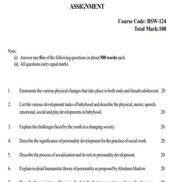 Q: Do you offer handwritten BSW124 IGNOU assignments?