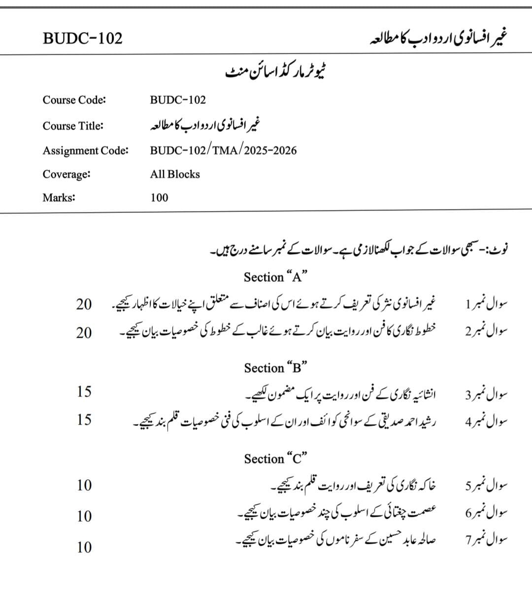 BUDC 102 IGNOU Solved Assignments 2025-26 (URDU) PDF Download – IGNOU Galaxy