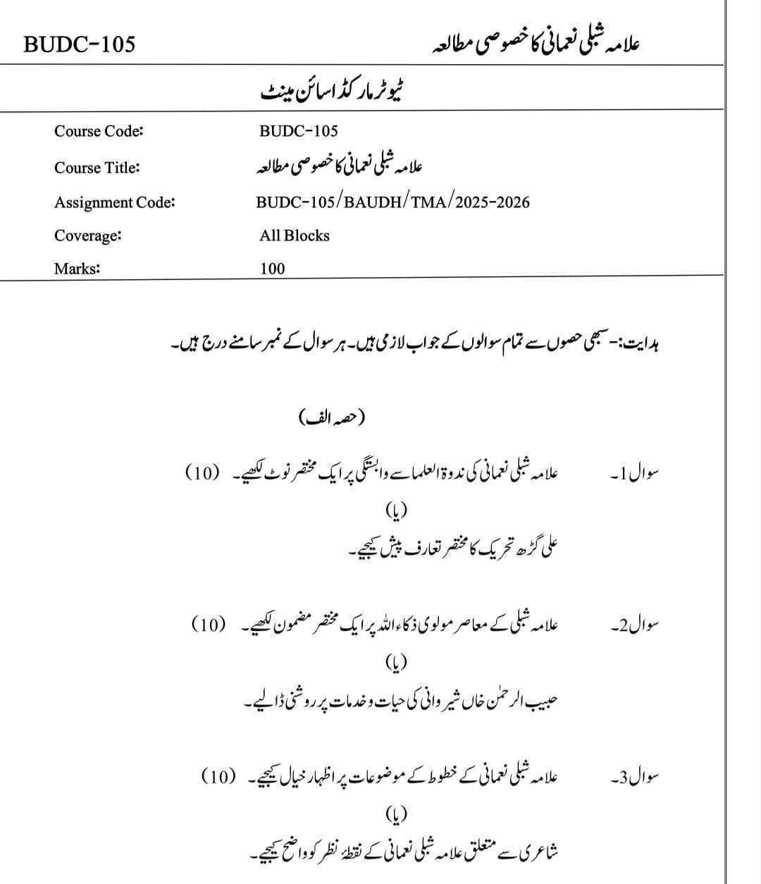 BUDC 105 IGNOU Solved Assignments 2025-26 (URDU) PDF Download – IGNOU Galaxy