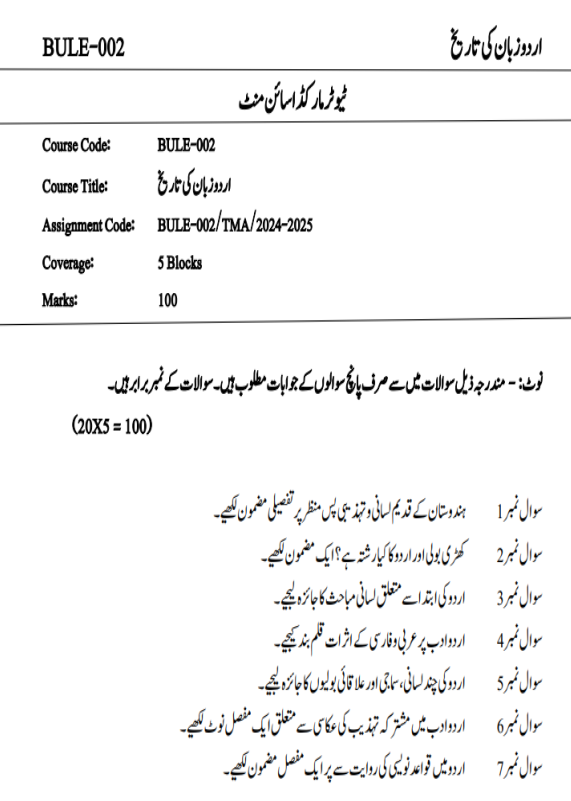 BULE 002 IGNOU Solved Assignments 2024-25 (URDU) PDF Download – IGNOU Galaxy