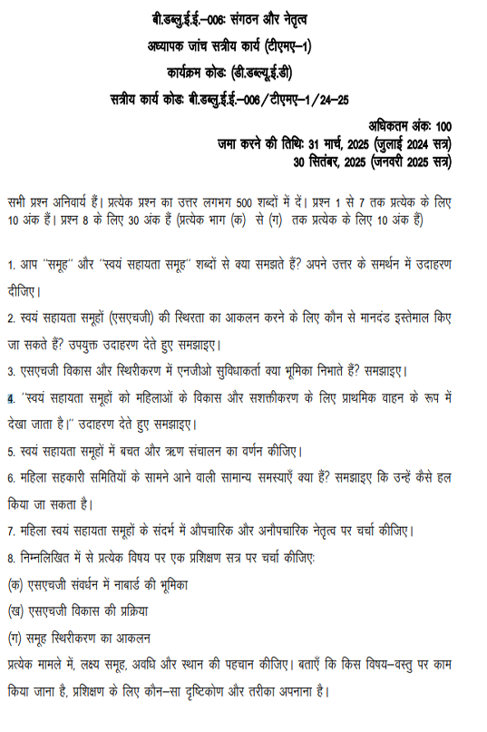 BWEE 006 IGNOU Solved Assignments 2024-25 (Hindi) PDF Download – IGNOU Galaxy