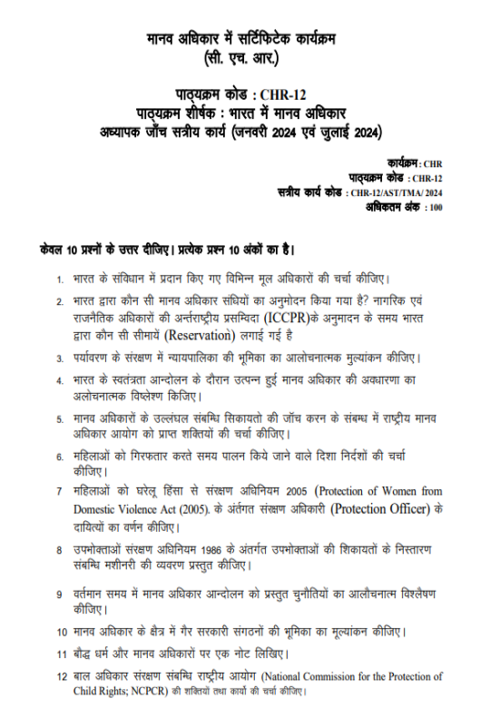 CHR 12 IGNOU Solved Assignments 2024-25 (Hindi) PDF Download – IGNOU Galaxy