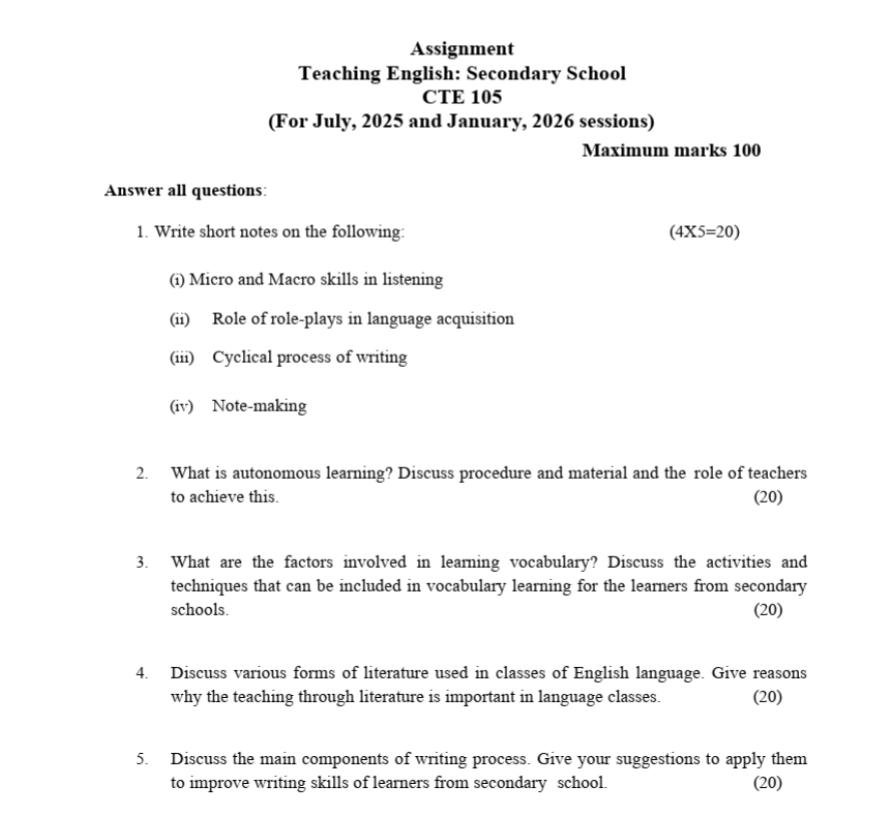 CTE 105 IGNOU Solved Assignments 2025-26 (English) PDF Download – IGNOU Galaxy