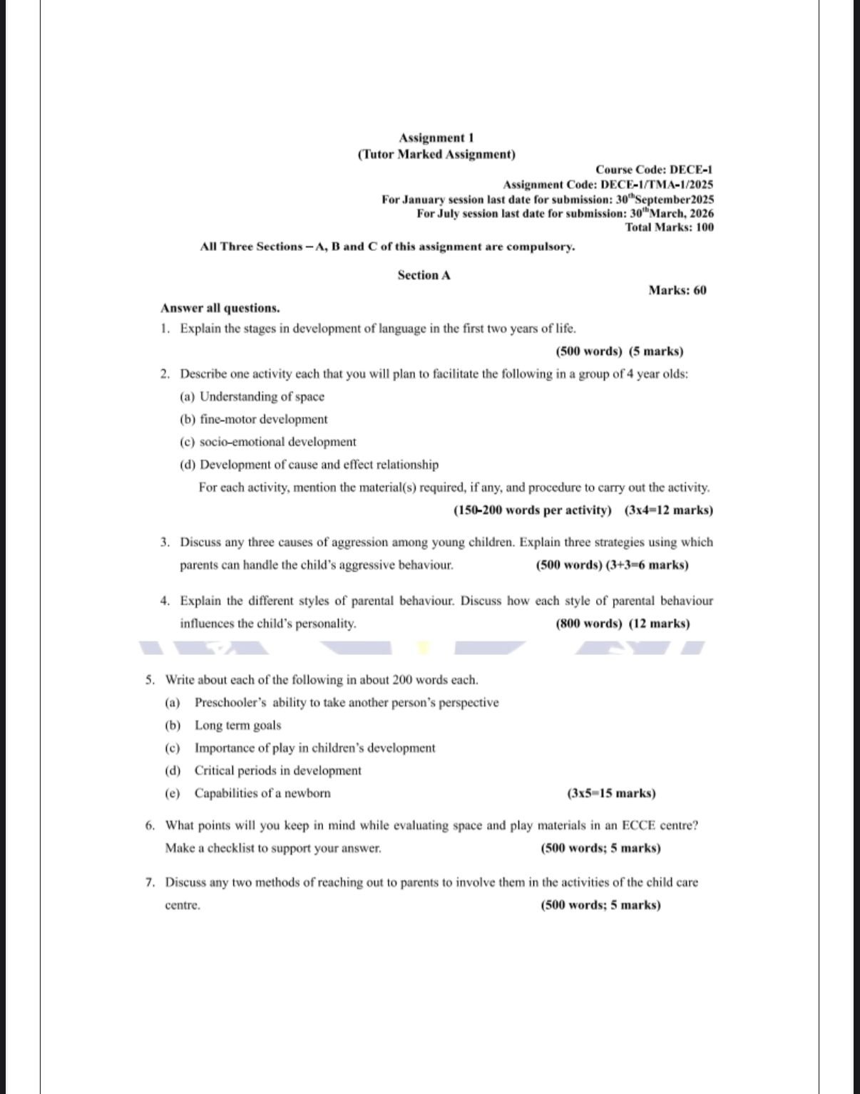 Q: Do you offer handwritten DECE 1 IGNOU assignments?