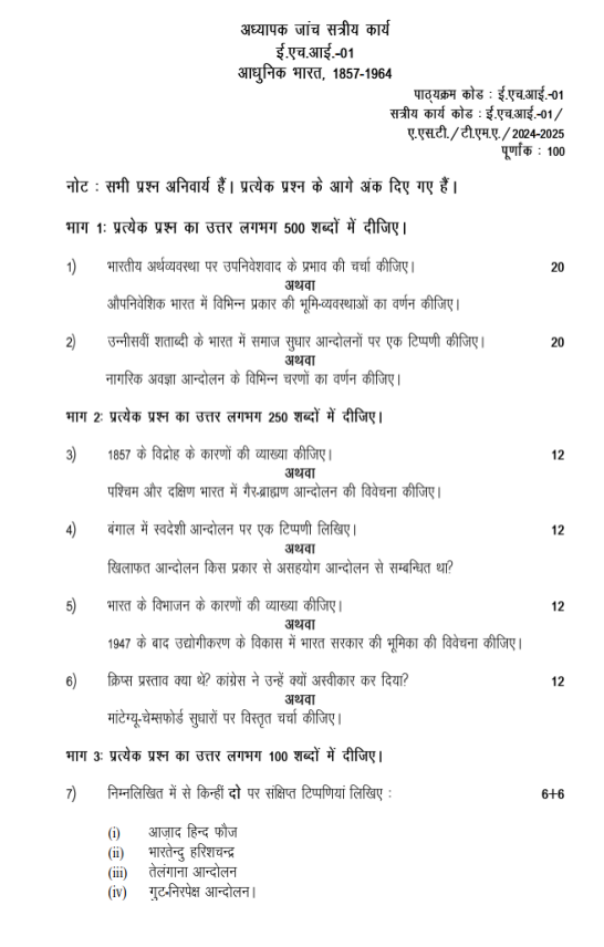 EHI 01 IGNOU Solved Assignments 2024-25 (Hindi) PDF Download – IGNOU Galaxy