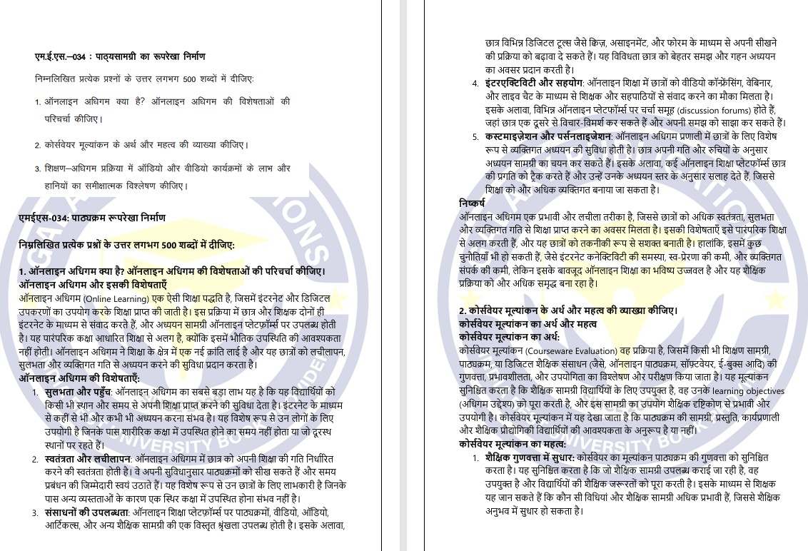 MES 034 IGNOU Solved Assignments 2025 (Hindi) PDF Download – IGNOU Galaxy