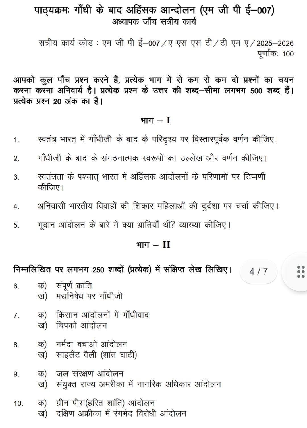 MGPE 007 IGNOU Solved Assignments 2025-26 (Hindi) PDF Download – IGNOU Galaxy