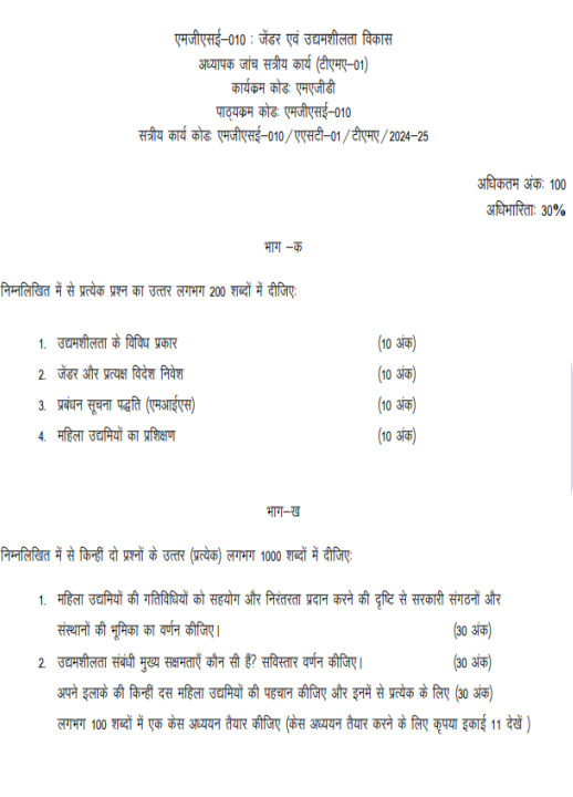 MGSE 010 IGNOU Solved Assignments 2024-25 (Hindi) PDF Download – IGNOU Galaxy