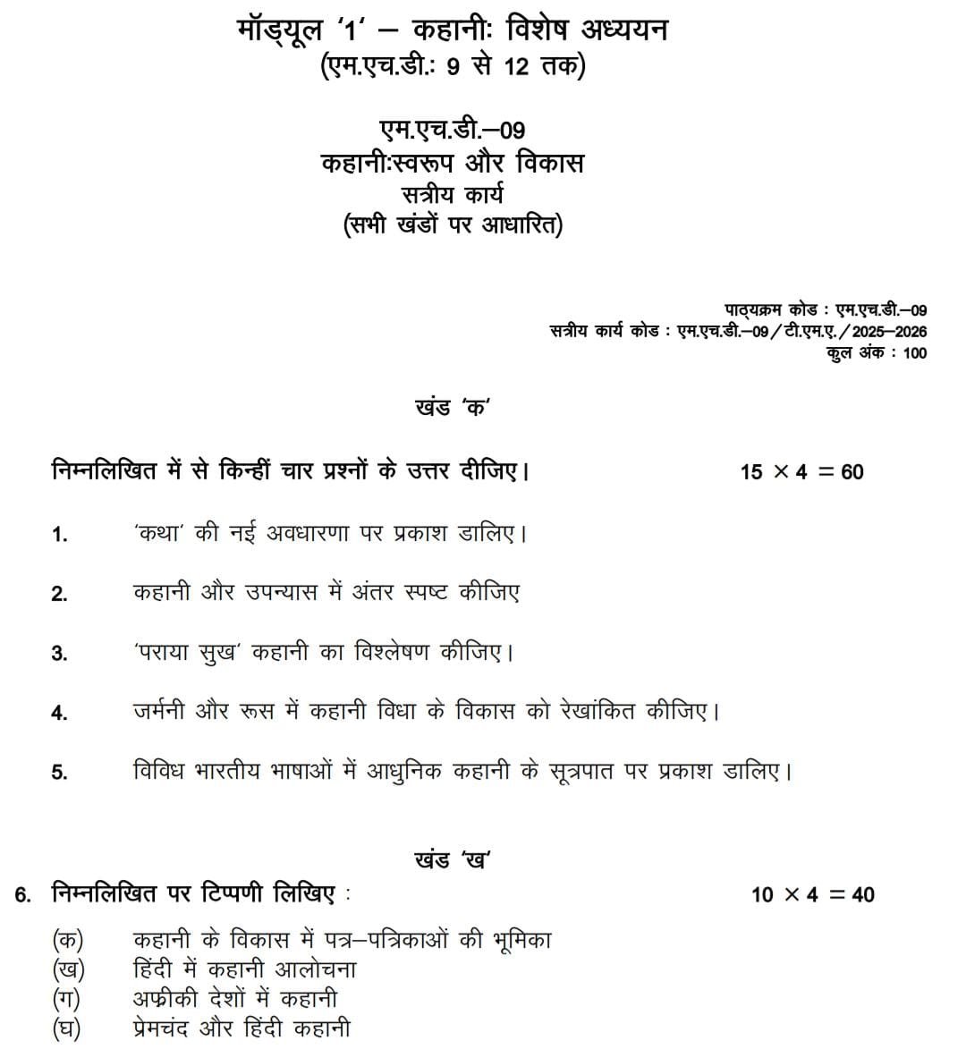 MHD 09 IGNOU Solved Assignments 2025-26 (Hindi) PDF Download – IGNOU Galaxy