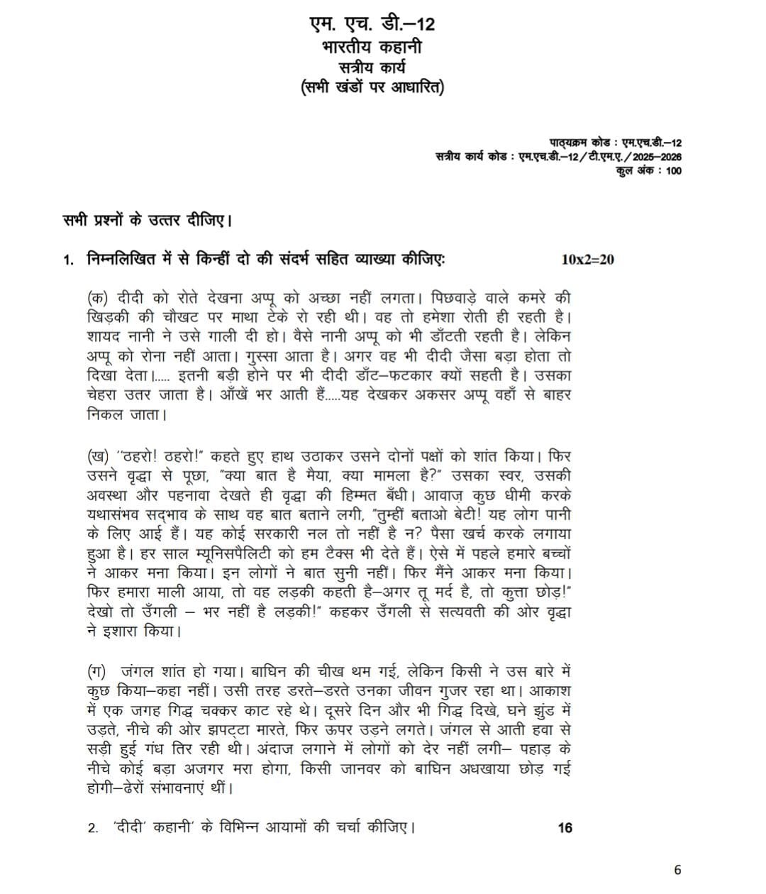 MHD 12 IGNOU Solved Assignments 2025-26 (Hindi) PDF Download – IGNOU Galaxy
