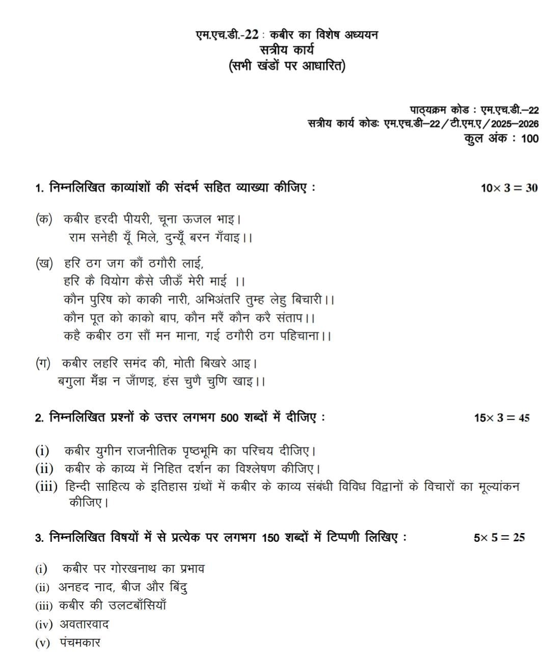MHD 22 IGNOU Solved Assignments 2025-26 (Hindi) PDF Download – IGNOU Galaxy
