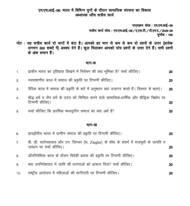 MHI 06 IGNOU Solved Assignments 2025-26 (Hindi) PDF Download – IGNOU Galaxy