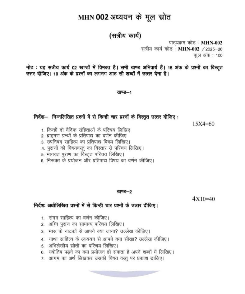 MHN 002 IGNOU Solved Assignments 2025-26 (Hindi) PDF Download – IGNOU Galaxy