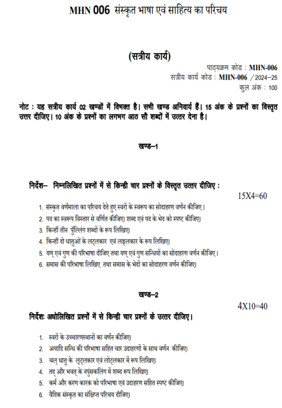 MHN 006 IGNOU Solved Assignments 2024-25 (Hindi) PDF Download – IGNOU Galaxy