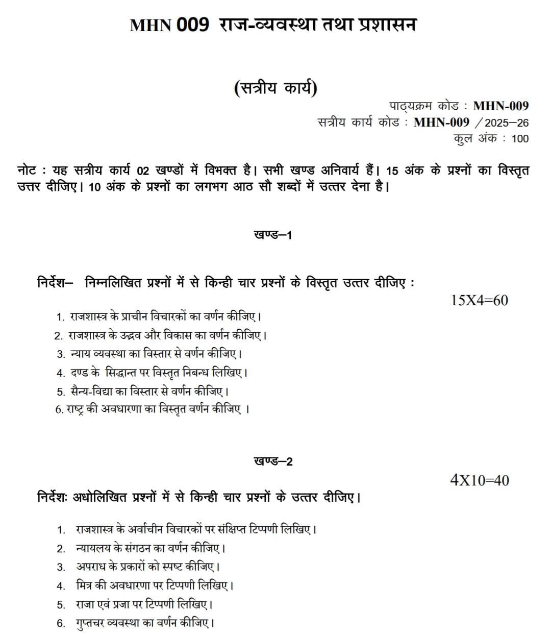 MHN 009 IGNOU Solved Assignments 2025-26 (Hindi) PDF Download – IGNOU Galaxy