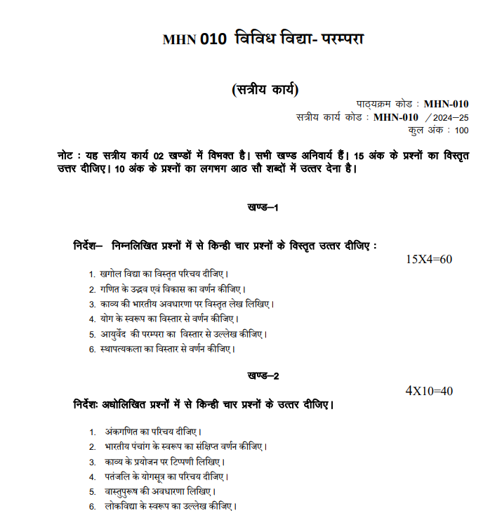 MHN 010 IGNOU Solved Assignments 2024-25 (Hindi) PDF Download – IGNOU Galaxy