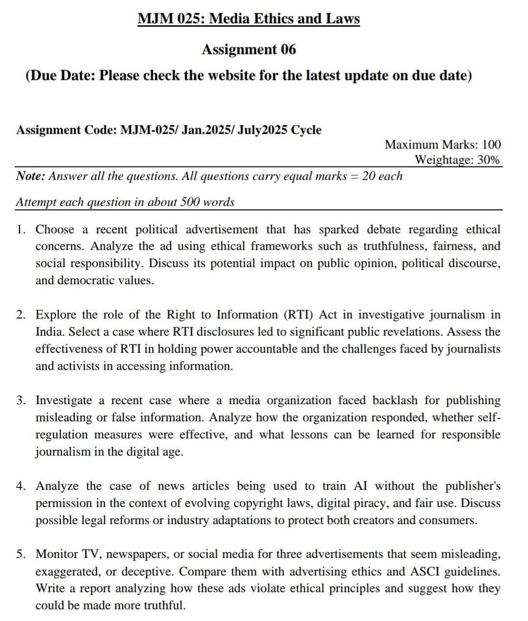 MJM 25 IGNOU Solved Assignments 2025-26 (ENGLISH) PDF Download – IGNOU Galaxy