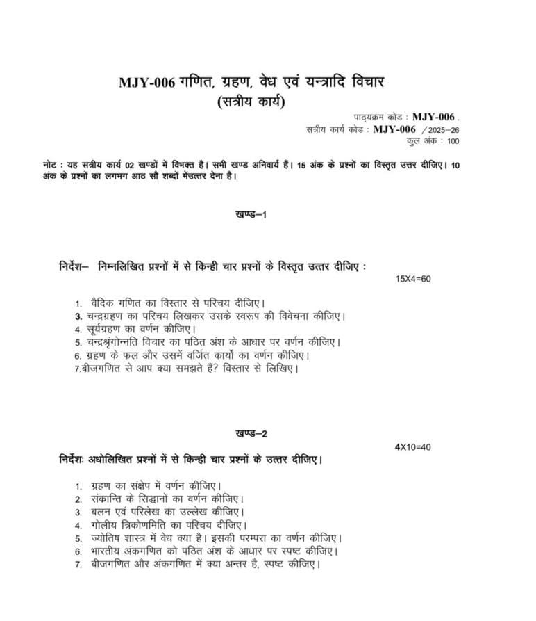 MJY 006 IGNOU Solved Assignments 2025-26 (Hindi) PDF Download – IGNOU Galaxy