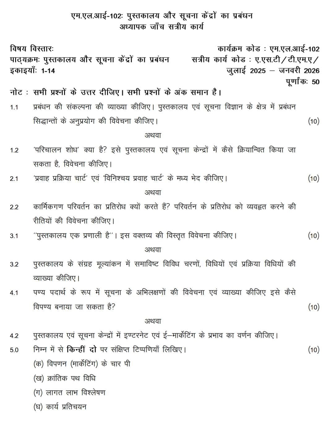 MLI 102 IGNOU Solved Assignments 2025-26 (Hindi) PDF Download – IGNOU Galaxy