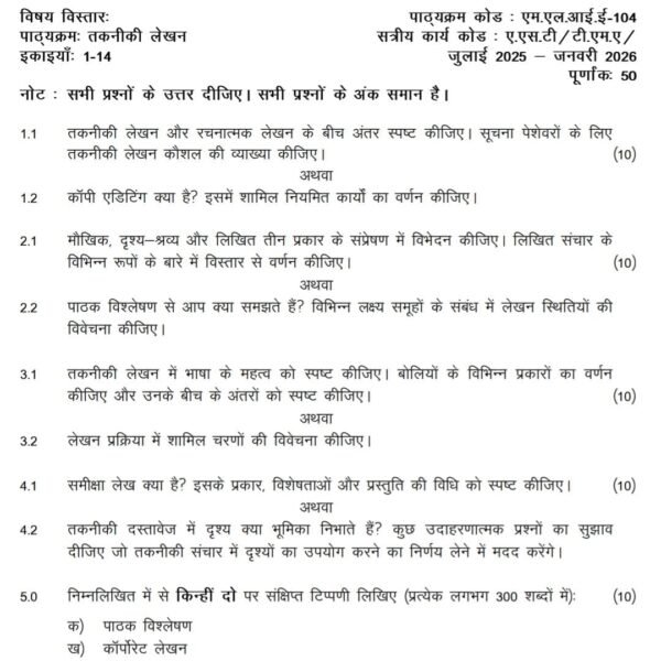 MLIE 106 IGNOU Solved Assignments 2025-26 (English) PDF Download – IGNOU Galaxy