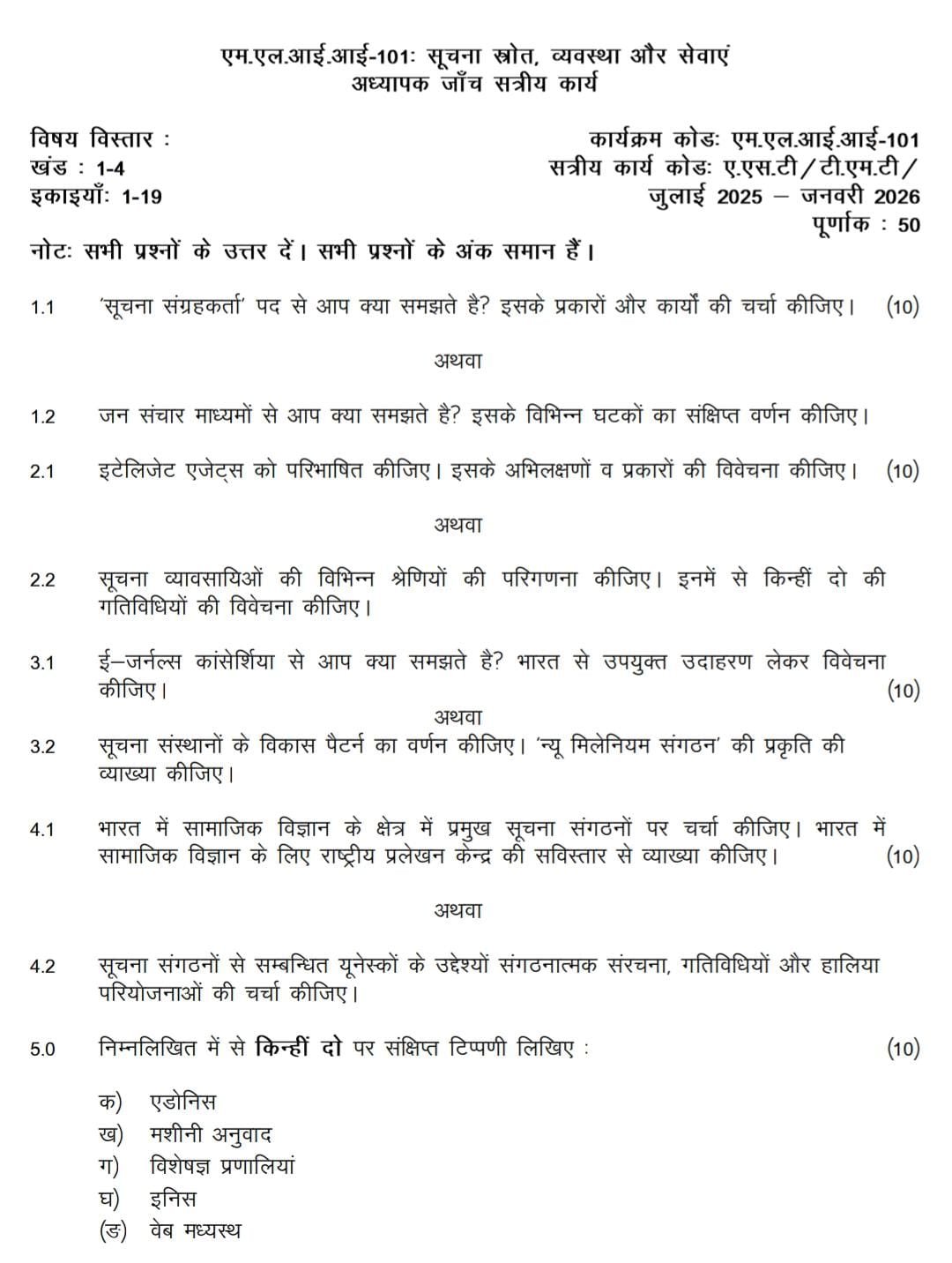 MLII 101 IGNOU Solved Assignments 2025-26 (Hindi) PDF Download – IGNOU Galaxy