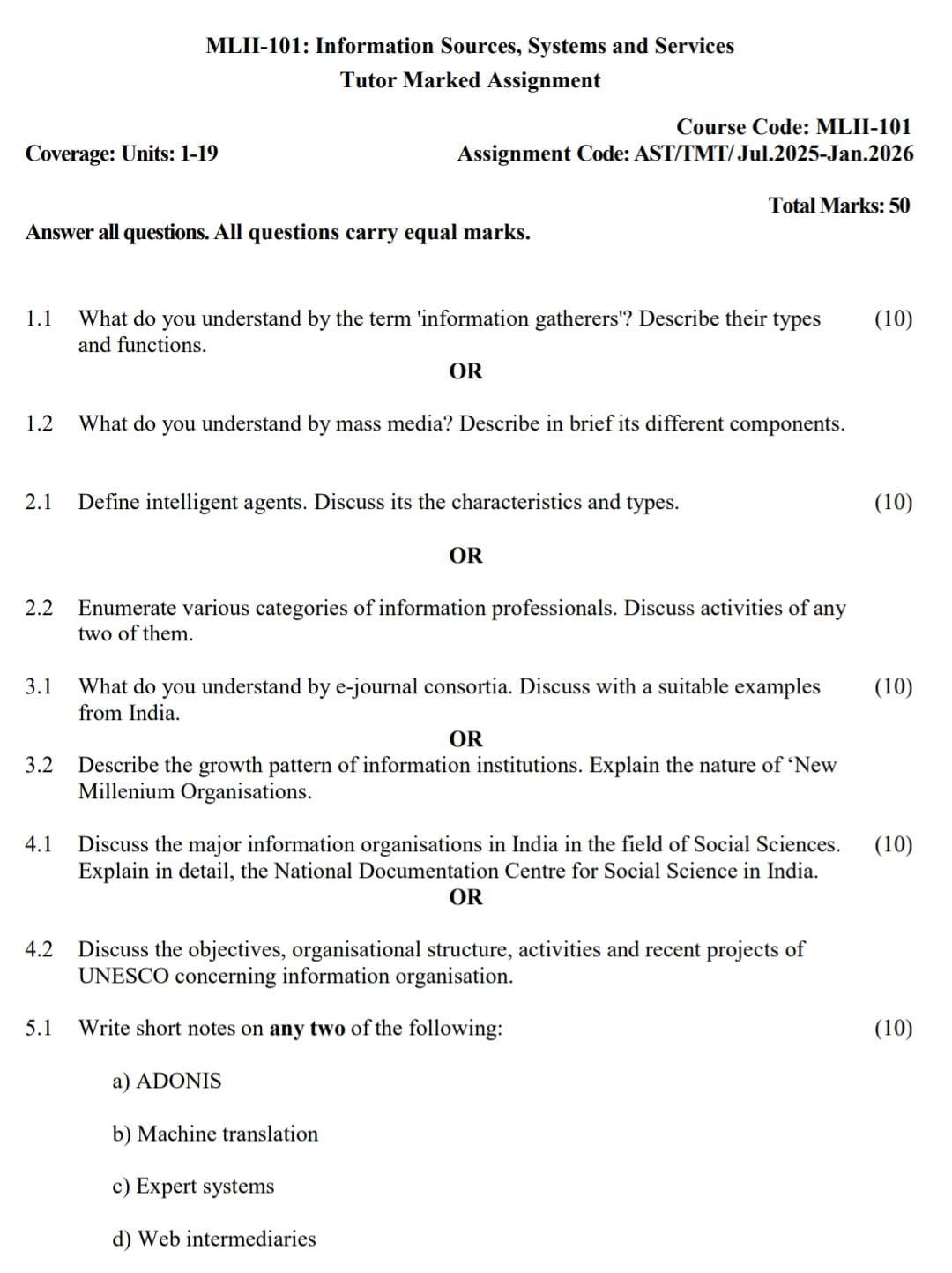 MLI 102 IGNOU Solved Assignments 2025-26 (English) PDF Download – IGNOU Galaxy