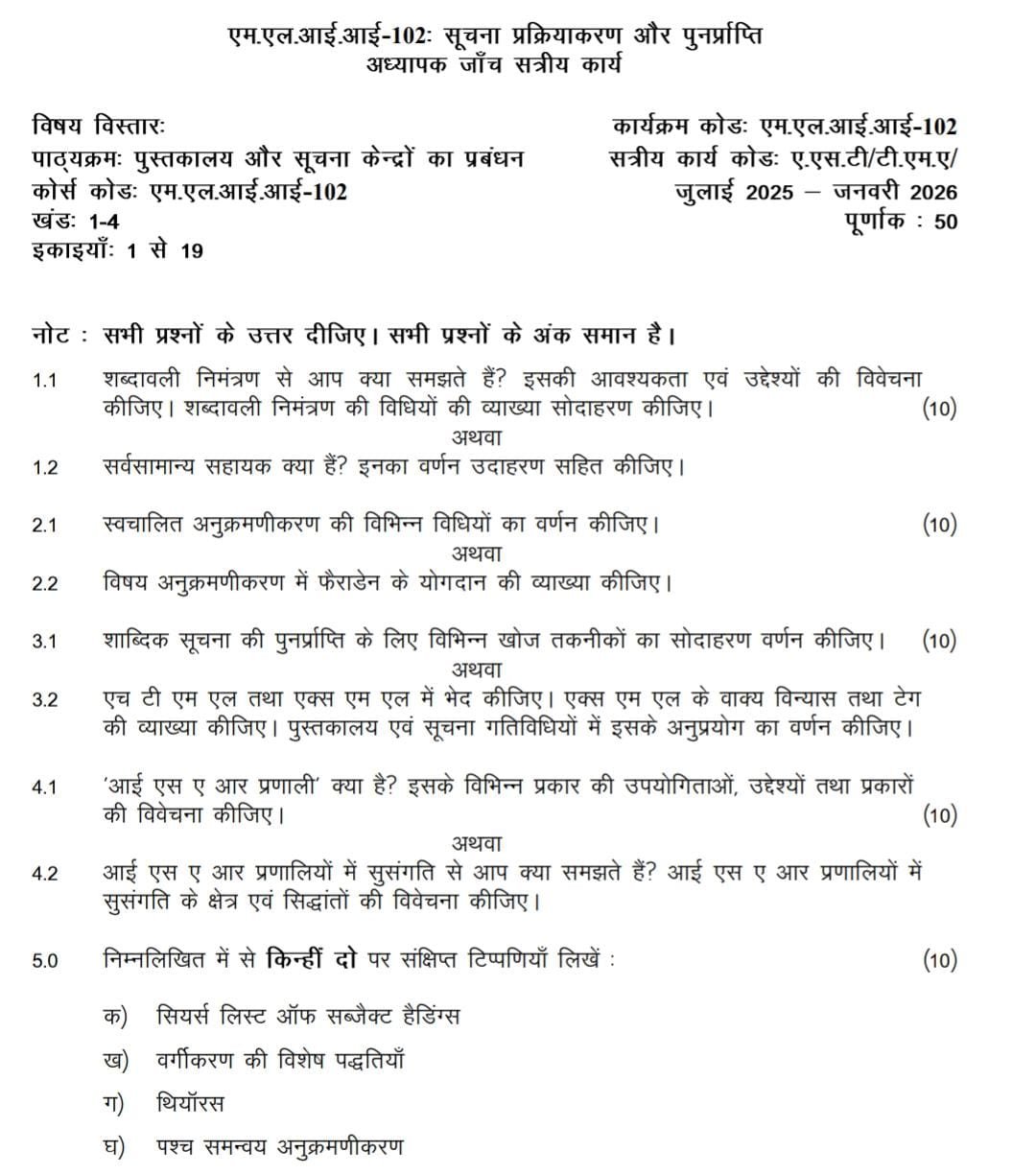 MLI 102 IGNOU Solved Assignments 2025-26 (Hindi) PDF Download – IGNOU Galaxy