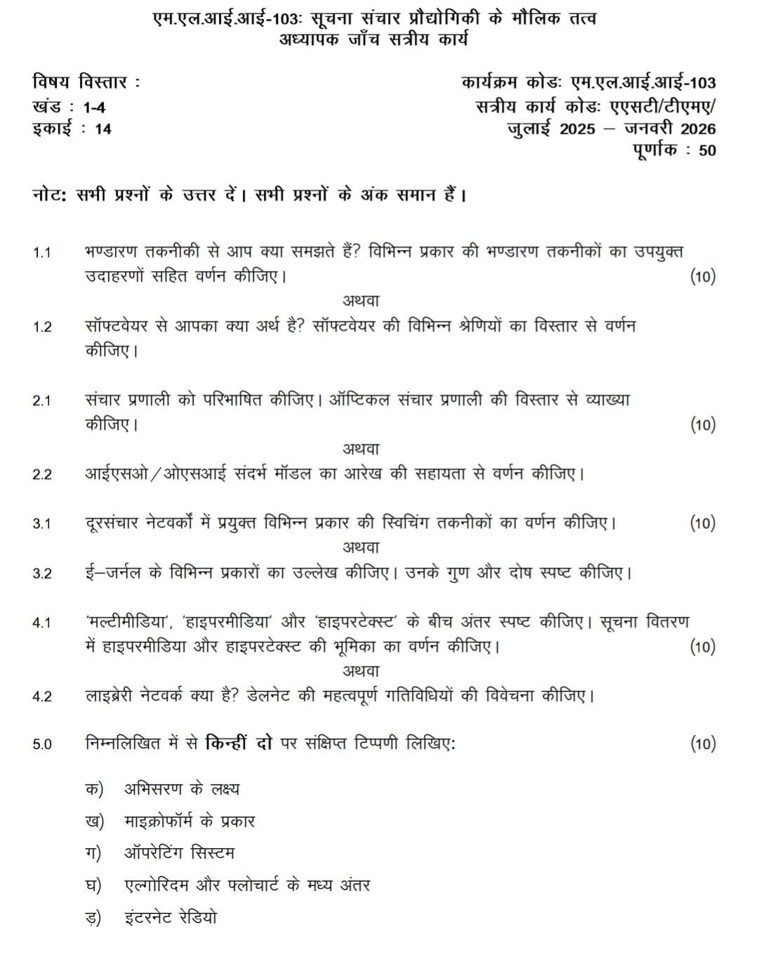 MLII 103 IGNOU Solved Assignments 2025-26 (Hindi) PDF Download – IGNOU Galaxy