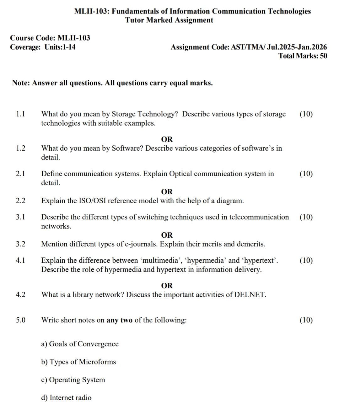 MLII 103 IGNOU Solved Assignments 2025-26 (English) PDF Download – IGNOU Galaxy