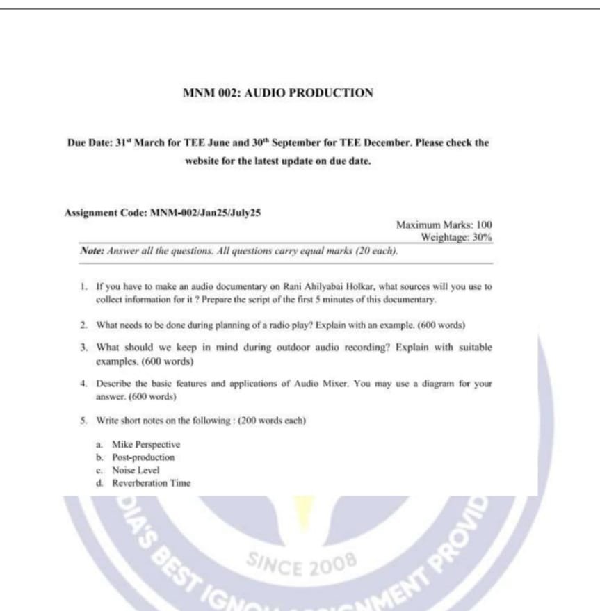 • Guaranteed Results: Our assignments ensure better academic performance and a competitive edge in IGNOU exams.