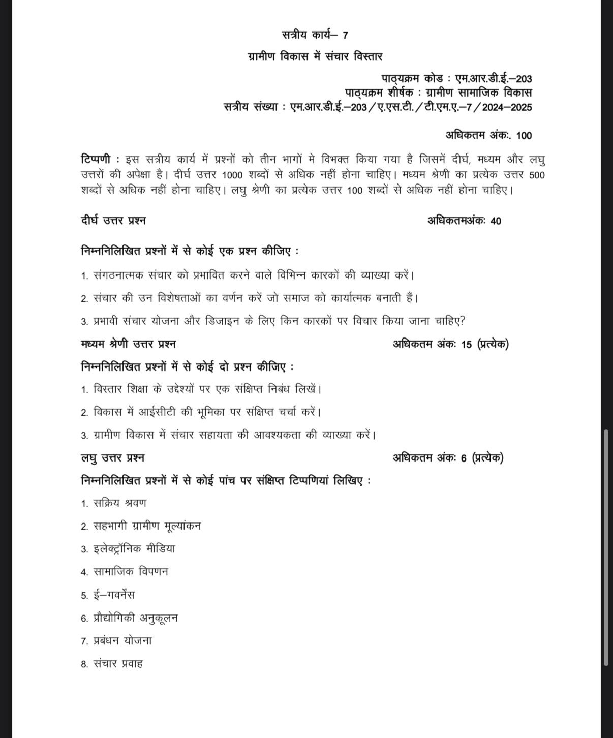 MRDE 203 IGNOU Solved Assignments 2024-25 (HINDI) PDF Download – IGNOU Galaxy