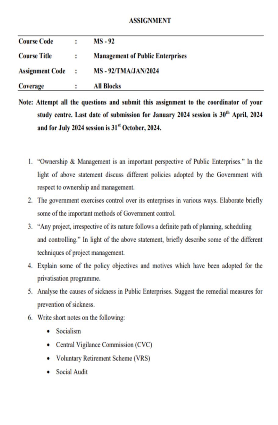 MS 92 IGNOU Solved Assignments 2025 (English) PDF Download – IGNOU Galaxy