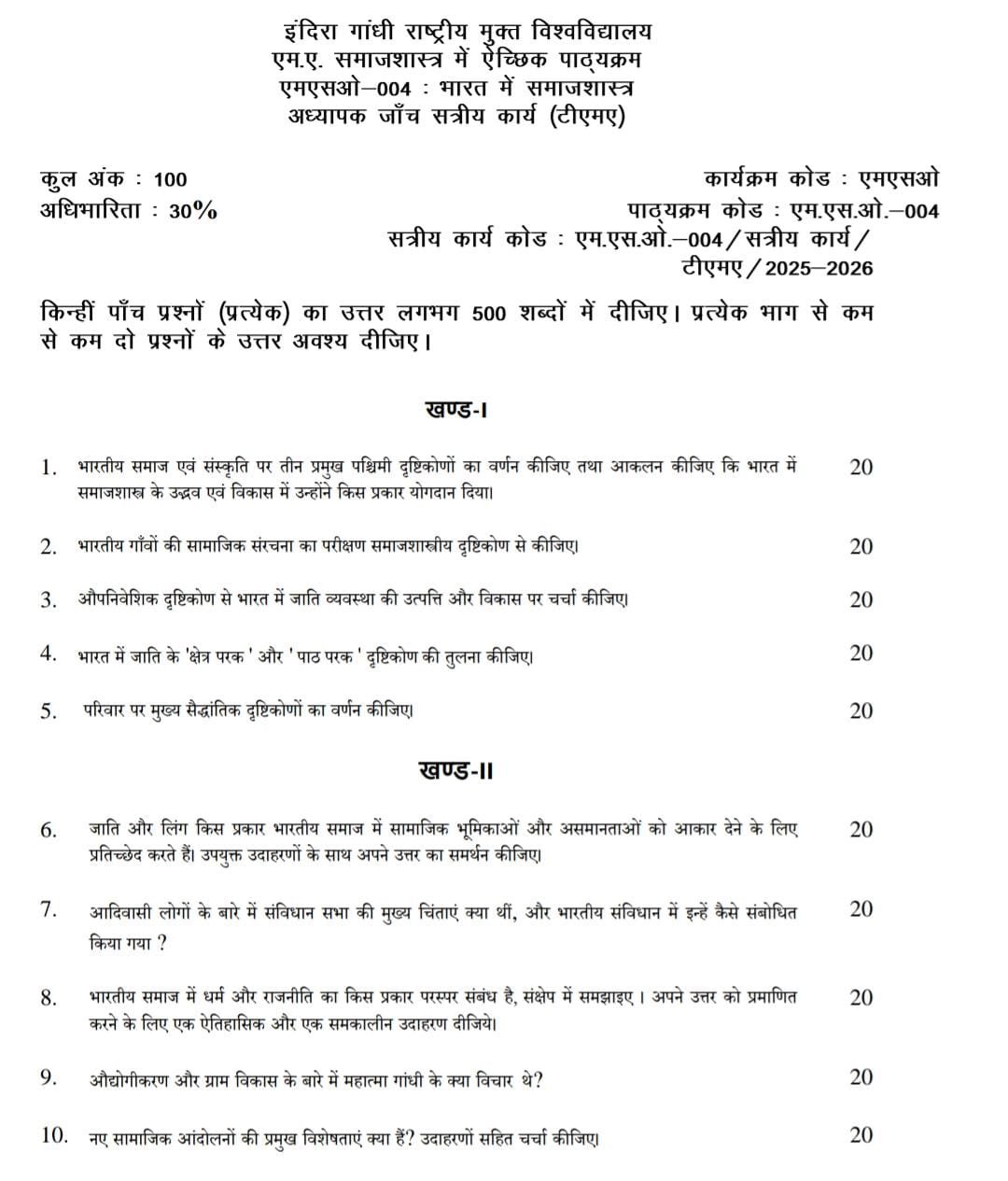 MSO 004 IGNOU Solved Assignments 2025-26 (Hindi) PDF Download – IGNOU Galaxy