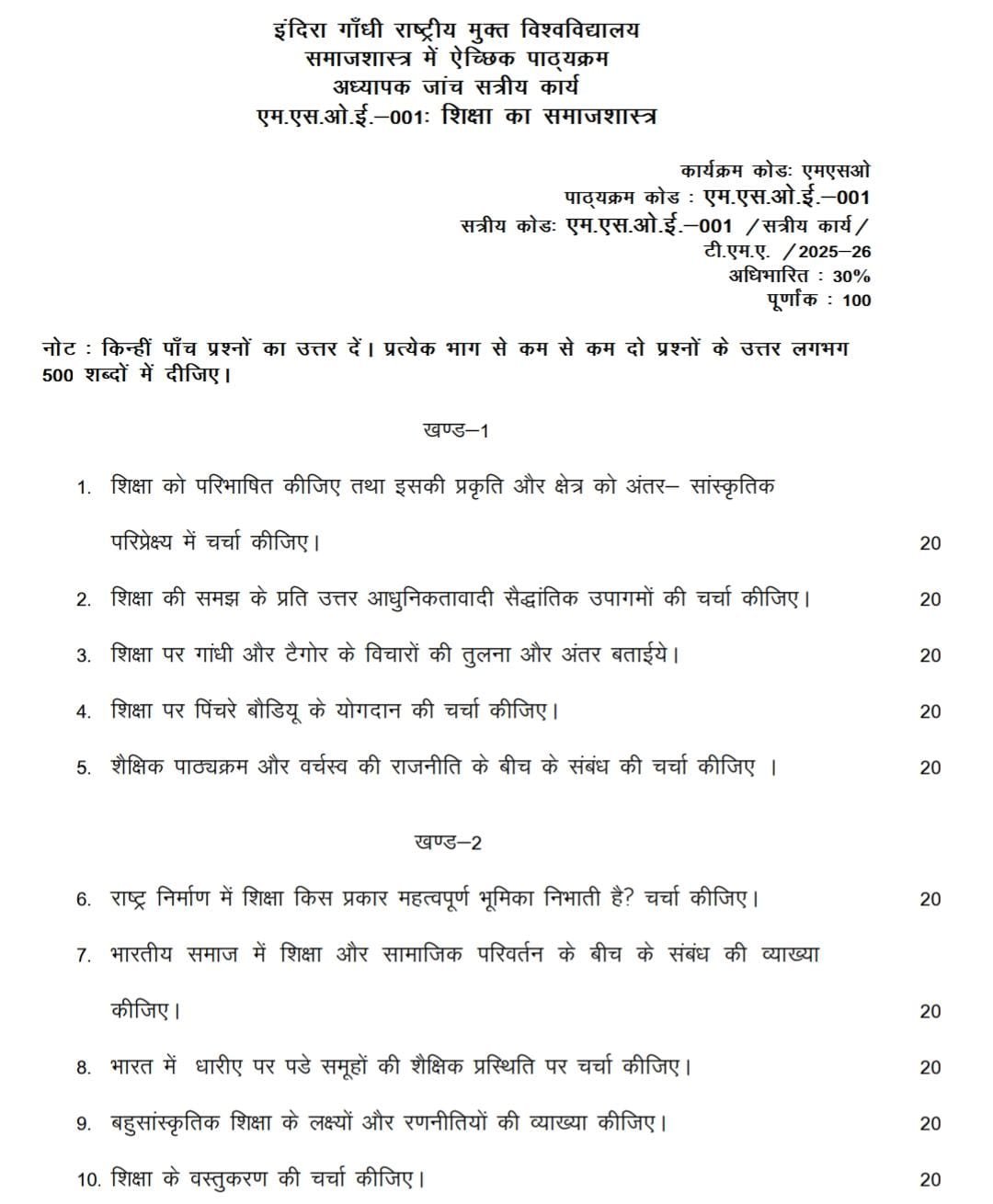 MSOE 001 IGNOU Solved Assignments 2025-26 (Hindi) PDF Download – IGNOU Galaxy
