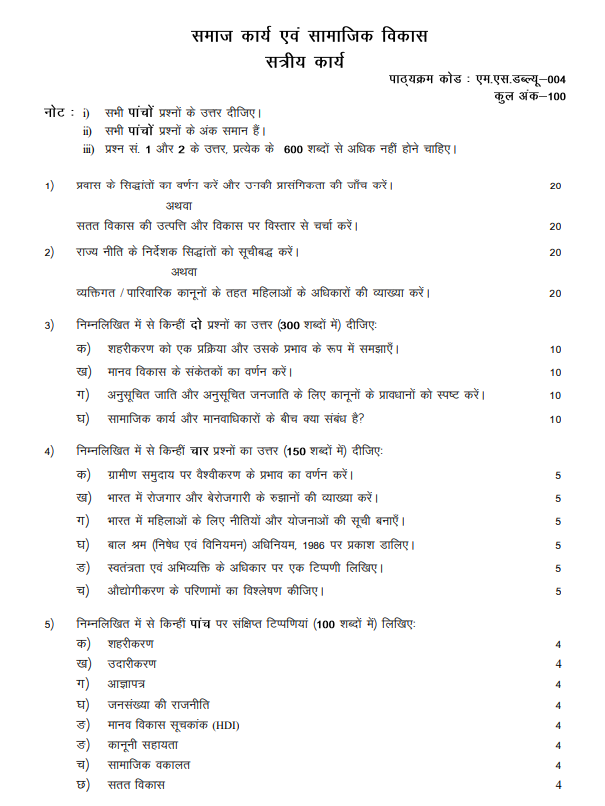 MSW 004 IGNOU Solved Assignments 2024-25 (Hindi) PDF Download – IGNOU Galaxy