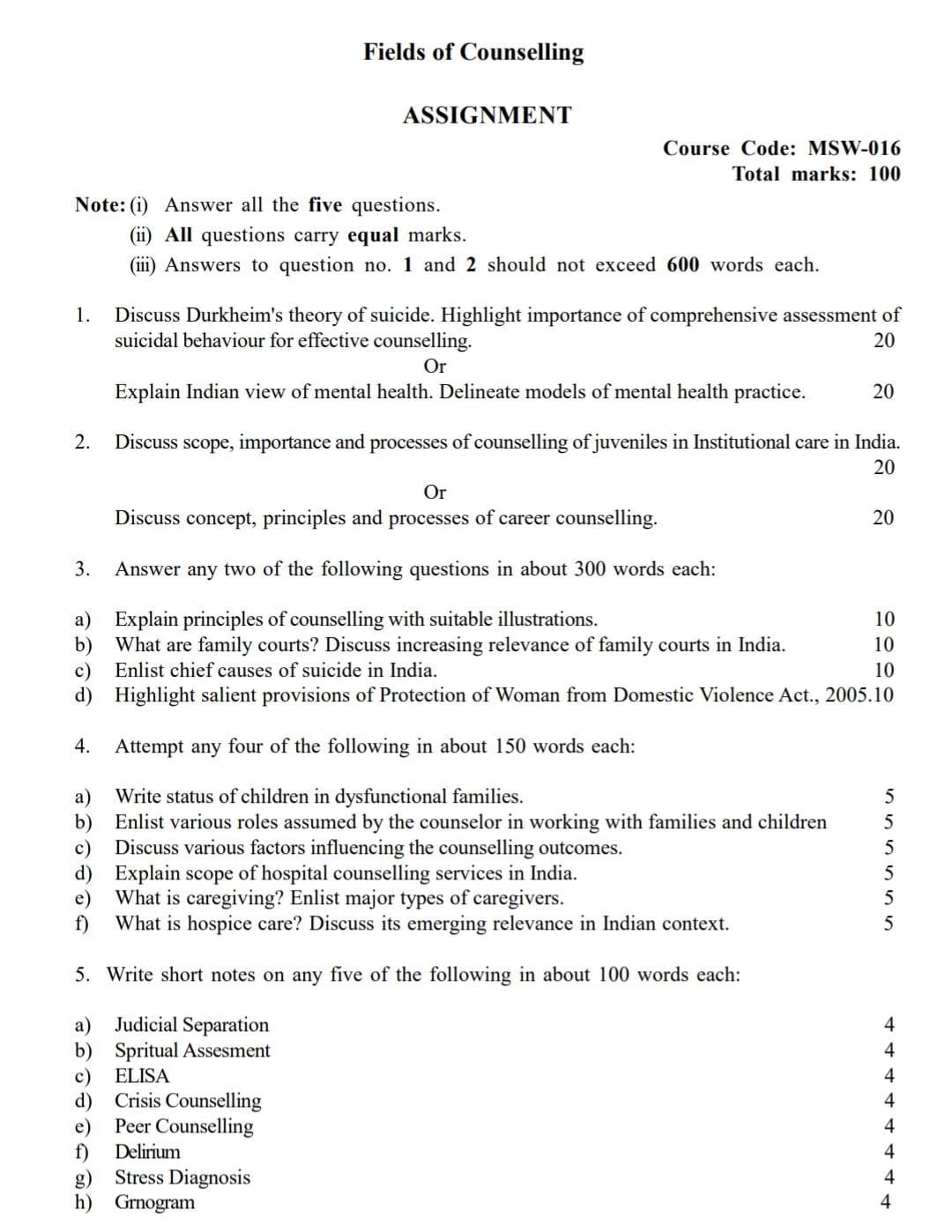 Q: Do you offer handwritten MSW016 IGNOU assignments?