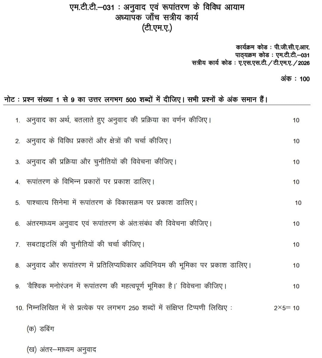 MTT 031 IGNOU Solved Assignments 2025-26 (Hindi) PDF Download – IGNOU Galaxy