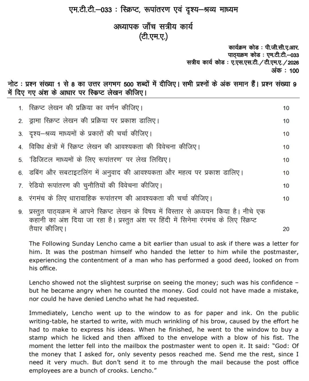 MTT 033 IGNOU Solved Assignments 2026 (Hindi) PDF Download – IGNOU Galaxy