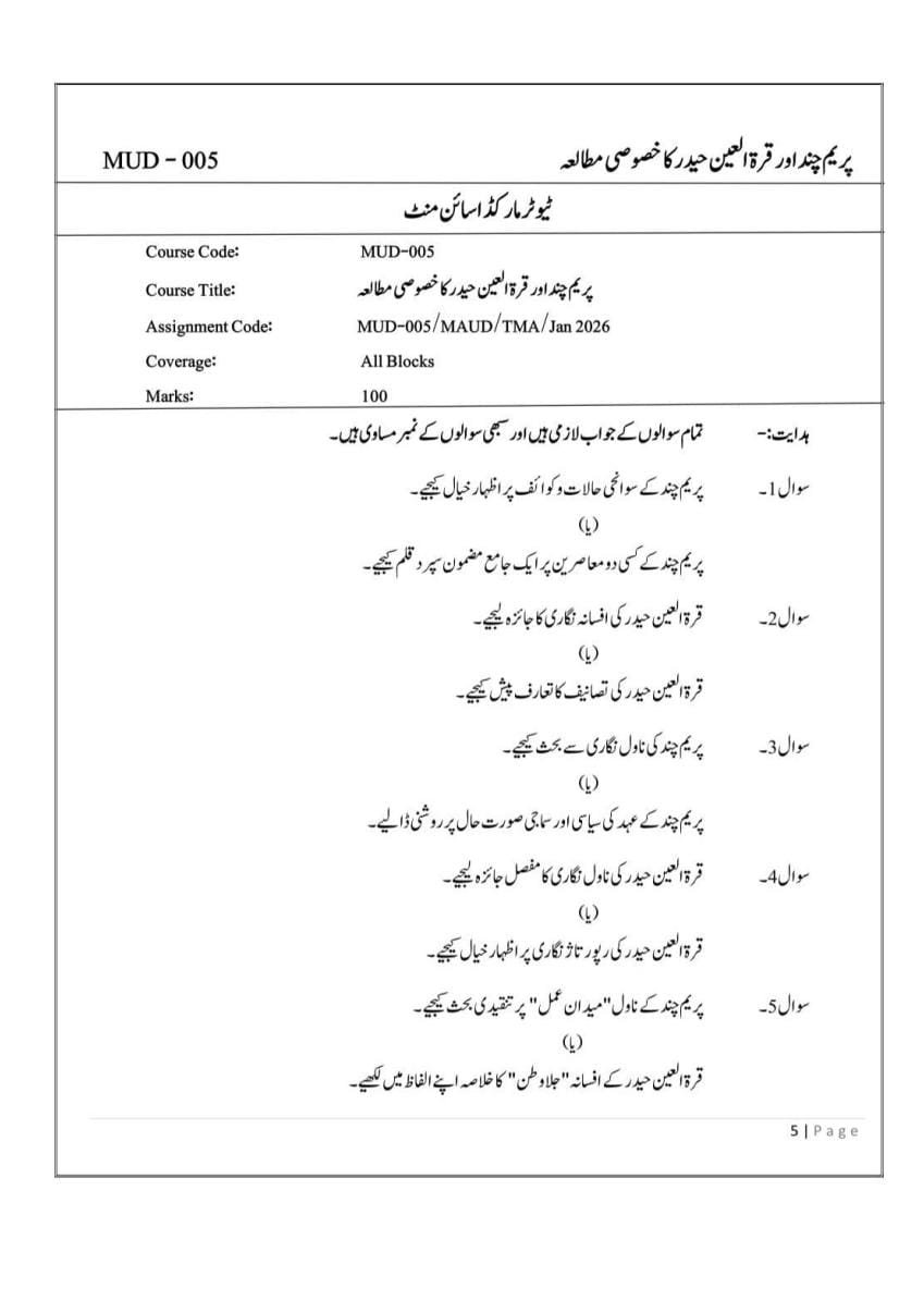 MUD 005 IGNOU Solved Assignments 2025-26 (URDU) PDF Download – IGNOU Galaxy